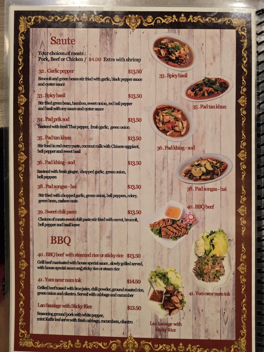 Due to high ratings we gave this restaurant a try since we were close by. We were very excited but I can see that my husband was ignored when he was trying to talk to the server guy (owner?). But the server guy was very friendly to regulars I supposed. Service was good with the girl server who refilled our drinks and took away our empty plates so we have more room on our table. She was friendly. The food...was okay I've had better so I was a bit disappointed. It just lack a bit of flavor. We did like how fast our foods were made. I like the thai tea and chicken satay the most. Lao papaya salad was better than a lot of thai restaurant's Lao papaya salad I've tried but like usual it's not crunchy enough. The boat noodle was okay I've had better. I do want to try their fried fish dishes next time if we happen to stop by.